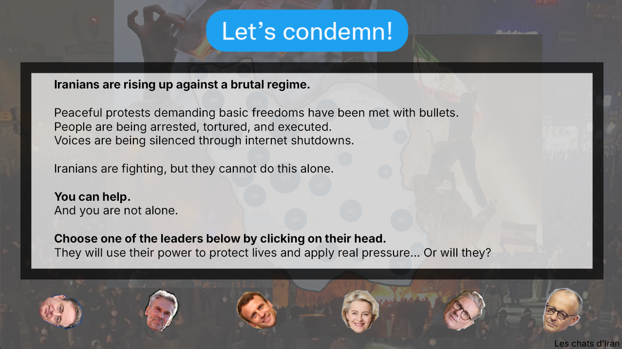 Let's condemn! is a political game that brings global visibility to the Iranian Revolution of 2026.